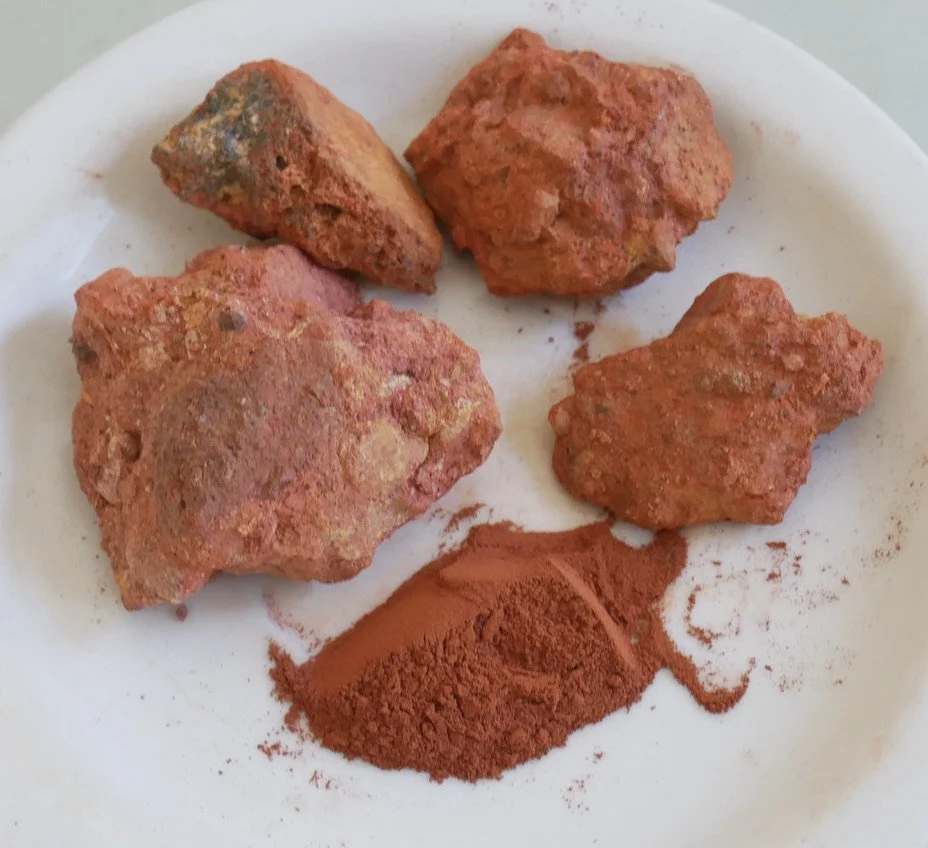 Ochre provides the material from which the paint is made. Each ochre pigment is a tacit representation of the landscape or country from which it originates.